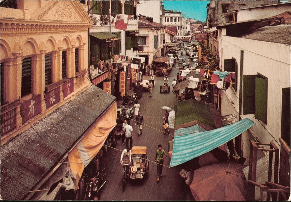 The historical quarter of Chinatown developed from the ‘Chinese Campong’, a Chinese colony marked by Sir Stamford Raffles in his 1822 Town Planning for Singapore. Constructed along the southwestern riverbank of the Singapore River, the colony initially spanned a region of one square mile and was divided into areas each inhabited by distinct Chinese dialect communities. Major construction of the quarter started in the 1840s when more land leases were granted for building shophouses, and by the turn of the new century, the area commonly faced overcrowding and traffic congestions. From the mid-1960s onwards, many of Chinatown’s inhabitants were relocated to new residential estates as a result of government-led urban revitalization and relocation programs. Major refurbishments of the shophouses within Chinatown were implemented in the 1980s and numerous of the street food vendors in the vicinity were transferred to Kreta Ayer Complex. In 2002, the Singapore Tourism Board launched the Chinatown Heritage Centre on Pagoda Street, aiming to highlight the region's extensive history.