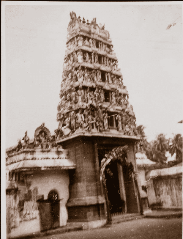 A vintage photo of a sculpted Hindu temple